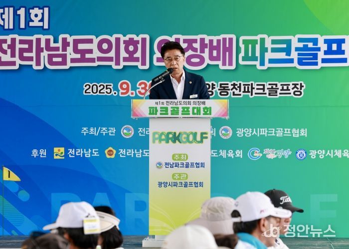 정안뉴스 안정주 기자 | 전라남도의회 김태균 의장은 9월 30일 광양 동천파크골프장에서 개최된 ‘제1회 전라남도의회 의장배 파크골프대회’ 개회식에 참석하여 선수와 임원들을 격려했다.