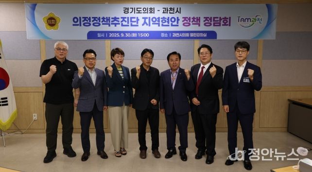 정안뉴스 안정주 기자 | 경기도의회 의정정책추진단은 30일 과천시 회의실에서 ‘지역 현안 정책 정담회’를 열고 과천 지역의 주요 정책 현안과 경기도의회 차원의 지원 방안을 논의했다.
