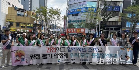 정안뉴스 황정혜 기자 | 부산 서구는 지난 29일, 추석 명절을 맞아 부산 서구새마을회와 함께 충무동 골목시장, 새벽시장, 해안시장 일원에서 명절 물가 안정 유도 및 전통시장 이용 캠페인을 실시하며, 딱! 살기 좋은 서구 만들기에 앞장섰다.