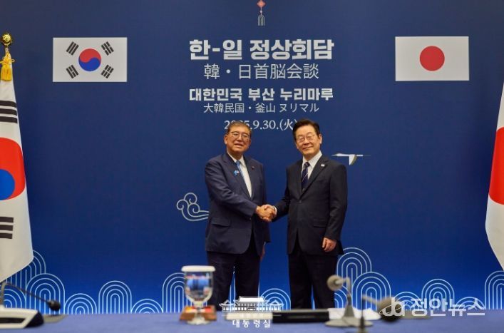 정안뉴스 안정주 기자 | 이재명 대통령은 9월 30일 '이시바 시게루(石破 茂)' 일본 총리와 부산에서 한일 정상회담을 가졌다. 양 정상은 한일 간 실질 협력 강화 방안과 지역 및 글로벌 차원에서의 협력 필요성에 대해 폭넓고 심도 깊은 의견을 교환했다.