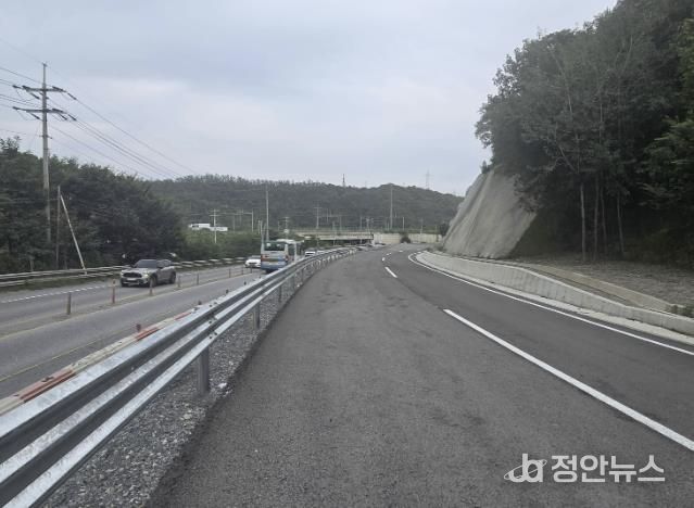 해당 구간은 본래 4차선 도로였으나 2024년 10월 성토 작업에 들어가면서 부득이하게 2차선만 운영됐고 공사 과정에서 도로 간 높은 표고차 문제가 드러나 안전 우려가 제기되면서 올해 1월부터 공사가 중단된 바 있다.