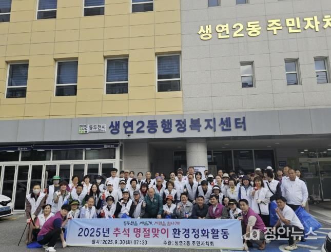 정안뉴스 안정주 기자 | 동두천시 생연2동 행정복지센터는 9월 30일 추석을 앞두고 사회단체 회원과 동 직원 등 80여 명이 참여한 가운데 관내 환경정화 활동을 실시했다.
