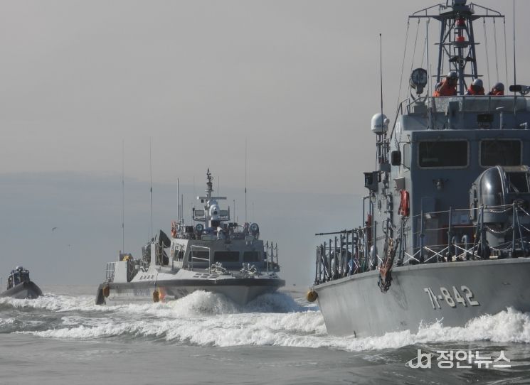 정안뉴스 안정주 기자 | 중부지방해양경찰청 서해5도특별경비단은 가을철 꽃게 성어기 대비 단속 대응력 향상을 위해 해군 인천해역방어사령부와 합동으로 저수심‧물곬 기동훈련을 실시했다고 1일 밝혔다.