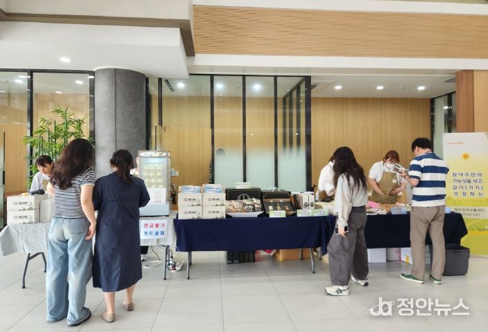 정안뉴스 황은경 기자 | 제천지역자활센터(센터장 김미숙)는 지난 9월 29일 제천시청 본관 1층 로비에서 추석맞이 자활생산품 판매전을 성황리에 열었다고 밝혔다.