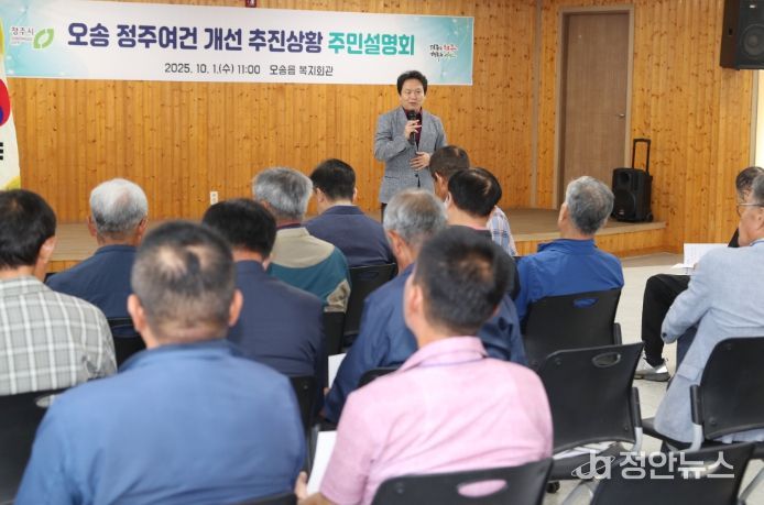 정안뉴스 황은경 기자 | 청주시는 1일 흥덕구 오송읍 복지회관에서 신병대 청주부시장 주재로 오송 정주여건 개선 추진상황 주민설명회를 열었다. 설명회에는 관계 공무원과 지역 주민 등 150여명이 참석했다.