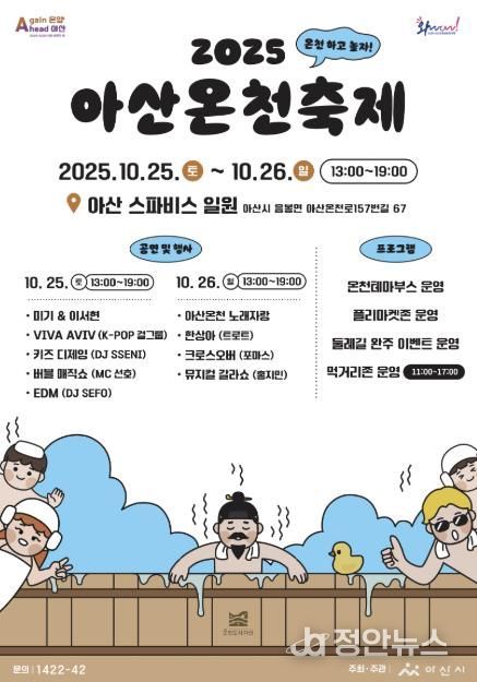 정안뉴스 황도연 기자 | 아산시가 주최하는 ‘2025 아산온천축제’가 오는 10월 25일부터, 26일까지 이틀간 아산스파비스 일원에서 열린다.