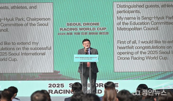 정안뉴스 안정주 기자 | 서울특별시의회 박상혁 교육위원장(서초 제1선거구, 국민의힘)은 10월 1일 광나루 한강드론공원에서 열린 '2025 서울 국제 드론 레이싱 월드컵'개회식에 참석하여 대회 개회를 축하하고, 참가 선수단과 관계자들을 격려했다.