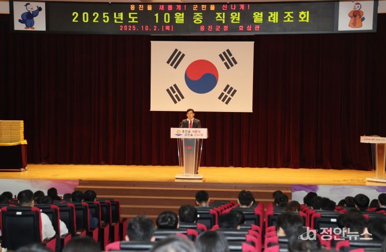 정안뉴스 안정주 기자 | 옹진군은 지난 2일, 군청 효심관에서 전 직원들이 참석한 가운데 ‘10월 중 월례조회’를 개최하고, 2026년 본예산 편성과 연말 사업 마무리, 가을철 재난 대비 및 추석 연휴 대응 방안 등을 공유했다.