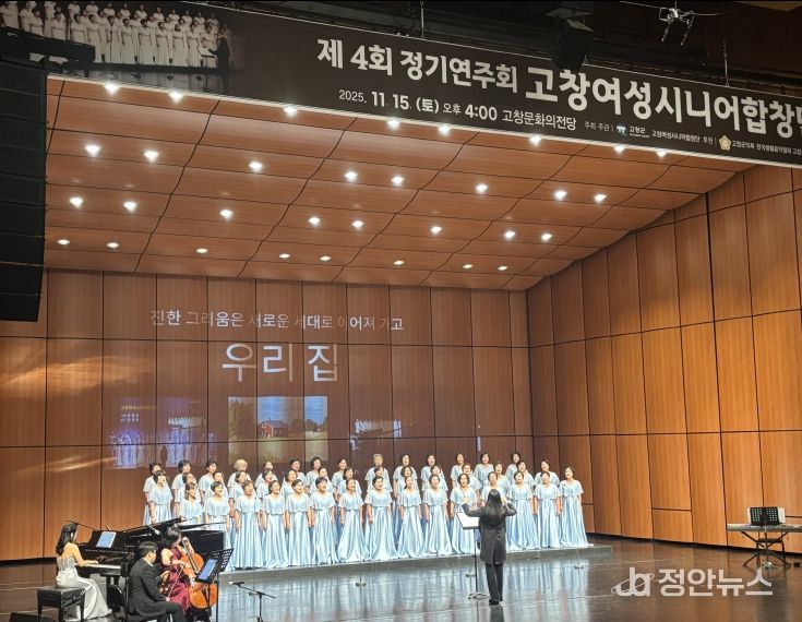 정안뉴스 안정주 기자 | 고창여성시니어합창단(단장 홍병숙)이 고창문화의전당에서 정기연주회를 열어 군민들의 마음을 낭만의 선율로 물들였다.