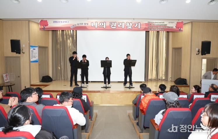 정안뉴스 안정주 기자 | 장애청소년들이 일상 속 권리의식과 인권 감수성을 높이기 위한 ‘제2회 장애청소년 공감법 콘서트’가 지난 15일 정읍시립중앙도서관 1층 강당에서 성황리에 열렸다.