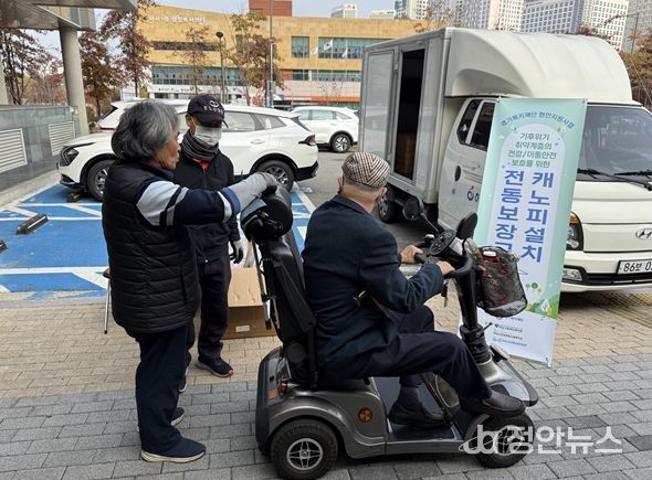 정안뉴스 안정주 기자 | 하남시장애인복지관(관장 민복기)은 11월 13일 경기복지재단에서 지원하는 제2차 복지현안지원사업에 선정되어 기후위기 취약계층의 건강과 이동 안전을 보호하기 위한 전동보장구 캐노피 지원사업을 본격적으로 진행했다고 밝혔다.