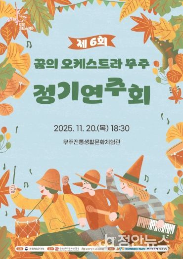 정안뉴스 안정주 기자 | 무주군은 오는 20일 오후 6시 30분 무주전통생활문화체험관에서 ‘제6회 아란 꿈의 오케스트라 정기연주회’를 개최한다고 밝혔다.