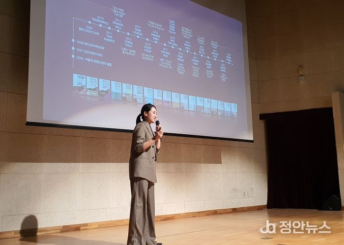 정안뉴스 안정주 기자 | 여주시 평생교육과는 17일 여주도서관 여강홀에서 여주시민을 대상 으로 서울대학교 소비자트렌드 분석센터 연구위원인 전다현 박사를 초청하여 '트렌드 코리아 2026 저자 특강'을 진행했다.