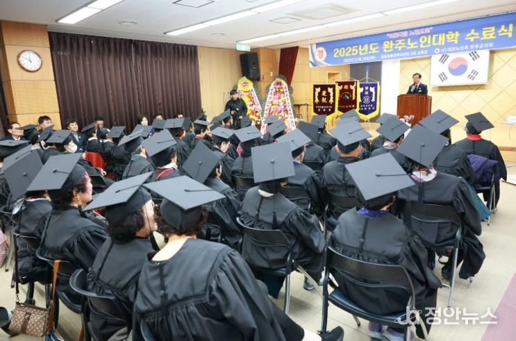 정안뉴스 안정주 기자 | 완주노인대학이 18일 봉동읍행정복지센터에서 2025년 수료식을 열고, 80명 어르신들이 8개월간의 평생학습 여정을 마무리했다.