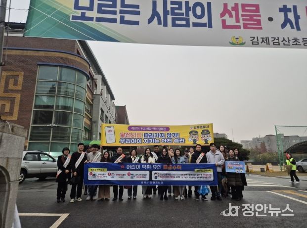 정안뉴스 안정주 기자 | 김제시는 25일 김제경찰서와 함께 등·하교 시간대 아동 대상 범죄 예방을 위한 ‘어린이 약취·유인 예방 합동 캠페인’을 실시했다고 밝혔다.
