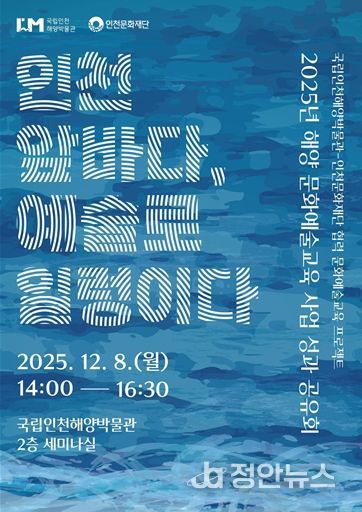 정안뉴스 안정주 기자 | (재)인천문화재단은 국립인천해양박물관과 협력하여 추진한 해양 문화예술교육 프로젝트 성과공유회를 오는 12월 8일 14:00부터 16:30분까지 국립인천해양박물관 2층 세미나실에서 개최한다.