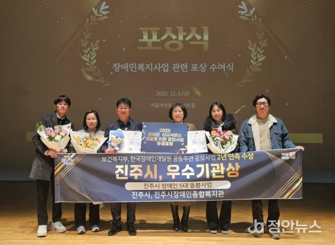 진주시는 보건복지부와 한국장애인개발원이 공동으로 주관한 ‘2025년 장애인 신규서비스 개발을 위한 공모사업’ 평가에서 ‘진주시 장애인 5대 돌봄사업’이 ‘우수상’을 차지해 2년 연속 수상의 영예를 안았다고 밝혔다.