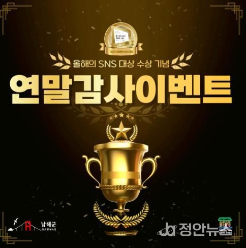 정안뉴스 김재홍 기자 | 남해군이 ‘2025년 올해의 SNS 블로그 대상’ 수상을 기념해 풍성한 연말 감사 이벤트를 진행한다.