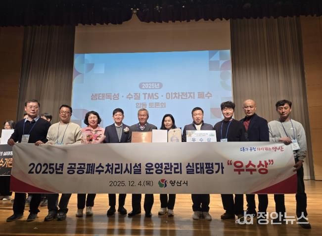 정안뉴스 김재홍 기자 | 양산시는 기후에너지환경부가 주관한 ‘2025년도 공공폐수처리시설 운영·관리 실태평가’에서 우수상을 수상했다고 밝혔다.