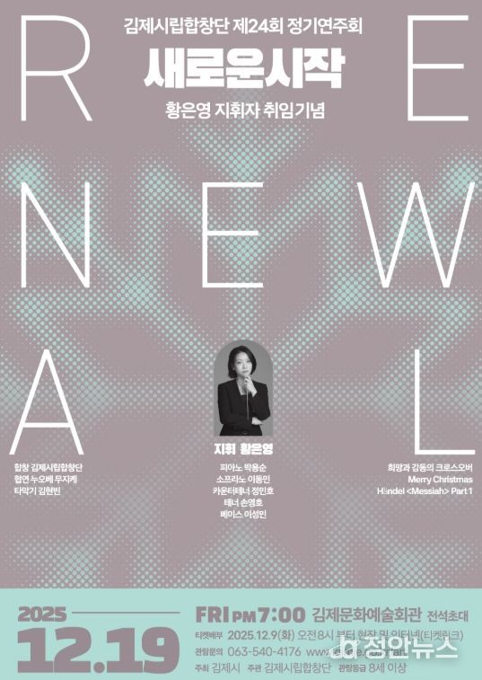 김제시립합창단 관계자는 “이번 연주회는 성탄의 기쁨과 ‘새로운 시작’의 설렘을 음악으로 담아낸 무대”라며 “시민들이 공연을 통해 따뜻한 위로와 희망을 얻는 시간이 되길 바란다”고 전했다.