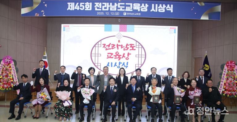 정안뉴스 안정주 기자 | 김정희 전남도의회 교육위원장은 12월 12일 오전 11시 전라남도교육청에서 열린 ‘제45회 전라남도교육상 시상식’에 참석해, 전남 교육 발전에 헌신해 온 수상자들에게 축하와 감사의 뜻을 전했다.