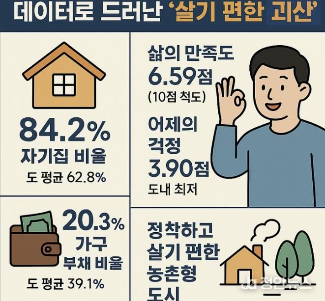정안뉴스 황은경 기자 | 충북도의 2025년 사회조사에서 괴산군이 정서 안정·생활 만족·주거 안정성 분야에서 도내 최고 수준을 기록하며 ‘살기 좋은 괴산’을 다시 한번 입증했다.