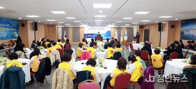 정안뉴스 김재홍 기자 | 대한적십자사 봉사회 사천시협의회 후원회와 대한적십자사 봉사회 사천시협의회는 지난 15일 사천시청 2층 대회의실에서 후원회장 이·취임식 및 협의회장 취임식을 개최했다.