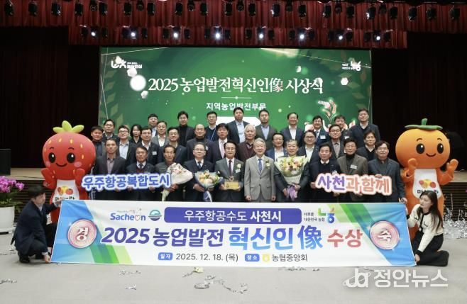 정안뉴스 김재홍 기자 | 사천시는 지난 18일 농협중앙회 본관에서 열린 ‘2025년 농업발전혁신인상(像) 시상식’에서 수상의 영예를 안았다고 19일 밝혔다.