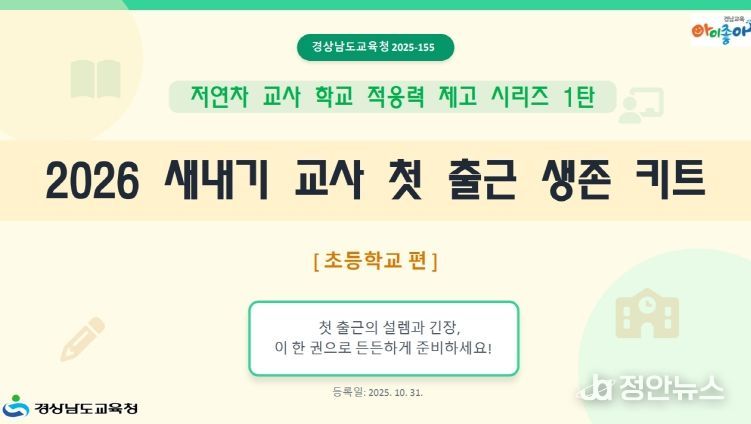 정안뉴스 김재홍 기자 | 경상남도교육청은 22일부터 도내 초등학교 신규 교사의 안정적인 학교 정착을 지원하기 위한 『2026 새내기 교사 첫 출근 생존 키트』를 도내 전 초등학교에 배포한다.