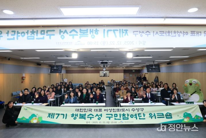 정안뉴스 안정주 기자 | 대구 수성구는 지난 22일 수성구청 대강당에서 ‘2025 행복수성 구민참여단 워크숍’을 개최했다.
