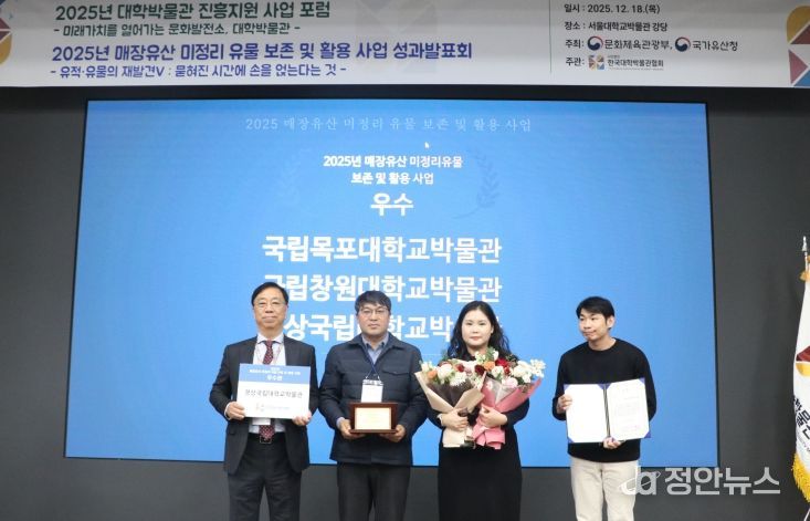 정안뉴스 김재홍 기자 | 경상국립대학교 박물관이 2025년 매장유산 미정리유물 보존 및 활용사업 평가에서 ‘우수관’으로 선정돼, 지난해 최우수기관 선정에 이어 2년 연속 우수성을 인정받는 성과를 거두었다.