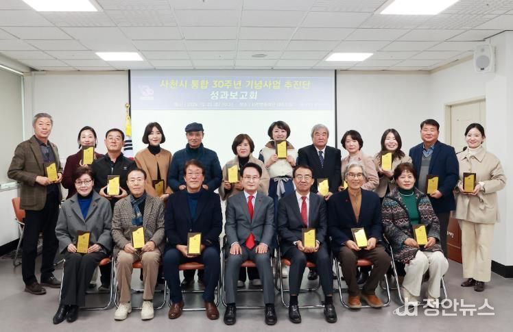 정안뉴스 김재홍 기자 | 사천시는 12월 23일 사천문화재단 대회의실에서 '사천시 통합 30주년 기념사업 추진단' 성과보고회를 열고, 지난 2년간 시민과 함께 걸어온 소중한 여정을 마무리했다.