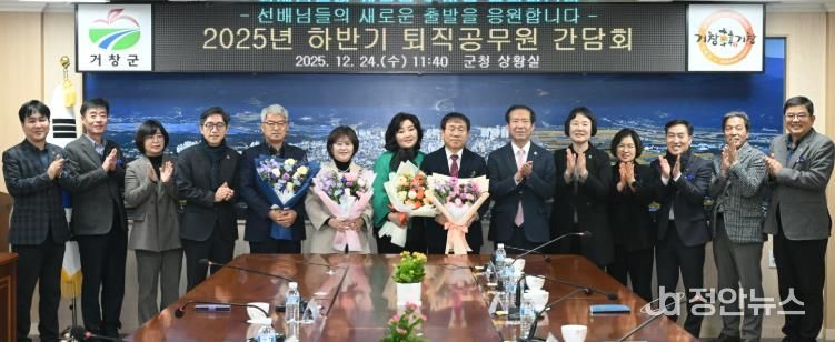정안뉴스 김재홍 기자 | 거창군은 지난 24일 군청 상황실에서 퇴직을 앞둔 공무원들의 공직생활의 노고와 헌신에 대한 감사를 전하기 위해 ‘2025년 하반기 퇴직공무원 간담회’를 개최했다.