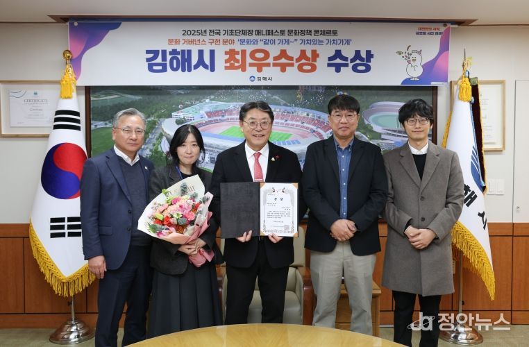 정안뉴스 김재홍 기자 | 김해시는 지난 23일'2025년 전국 기초단체장 매니페스토 문화정책 콘체르토 대회'에서 문화거버넌스 구현 분야‘최우수상’을 수상했다고 밝혔다.