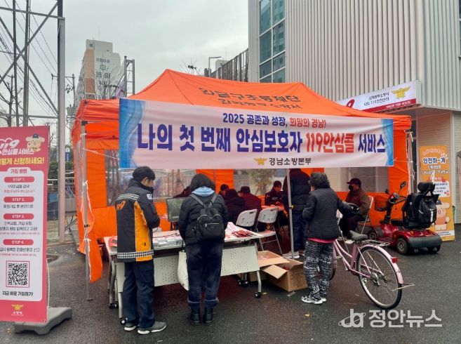 정안뉴스 김재홍 기자 | 경상남도 소방본부는 24일 경상남도 소방본부와 김해동부소방서가 김해시 거북공원과 외동전통시장 일대에서 119안심콜 홍보 캠페인을 실시했다고 밝혔다.