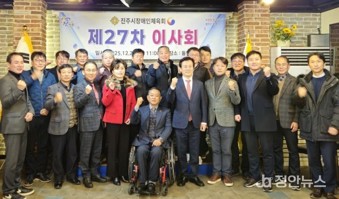 진주시장애인체육회장인 조규일 진주시장은 “이사님들의 많은 관심과 협조로 올해 경남장애인생활체육대회를 비롯한 각종 대회에서 우수한 성적을 거둘 수 있었다”며 “2026년에도 진주시장애인체육회가 안정적으로 운영되고, 장애인체육이 지속적으로 발전할 수 있도록 우리 임원들이 힘을 모아 주시기를 바란다”고 당부했다.