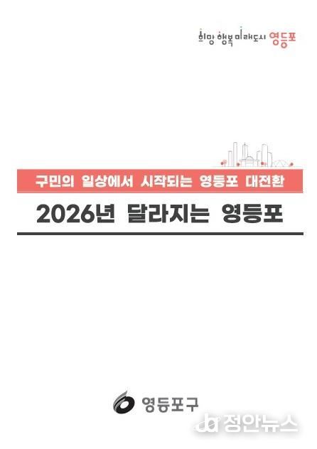 정안뉴스 안정주 기자 | 영등포구가 붉은 말의 해 병오년 새해를 맞아 구민 생활과 밀접한 주요 정보를 한눈에 확인할 수 있도록 주거‧경제‧교육‧문화‧복지 5대 분야, 75개 정책을 담은 ‘2026년 달라지는 영등포’를 제작했다고 밝혔다.