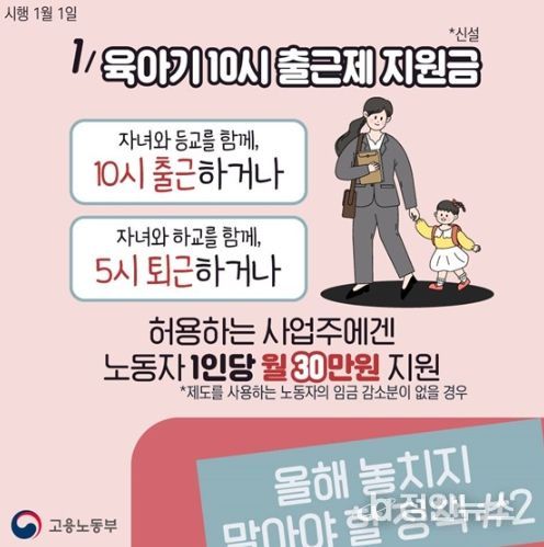 정안뉴스 안정주 기자 | 1. 육아기 10시 출근제 지원금(*신설)