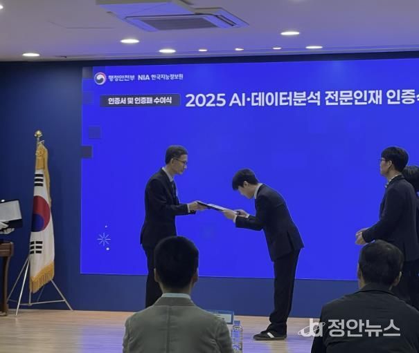 정안뉴스 안정주 기자 | 서울 성동구는 지난 12월 10일 행정안전부 주최 ‘AI·데이터 분석 전문인재 인증서 수여식’에서 데이터 인재양성 선도기관으로 인증을 받았다고 밝혔다.