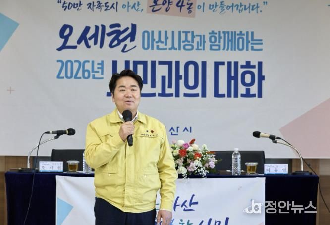 정안뉴스 황도연 기자 | 아산시는 22일 온양농협 회의실에서 ‘2026 시민과의 대화’를 열고, 지역 여건과 주요 현안에 대한 주민 의견을 청취했다.