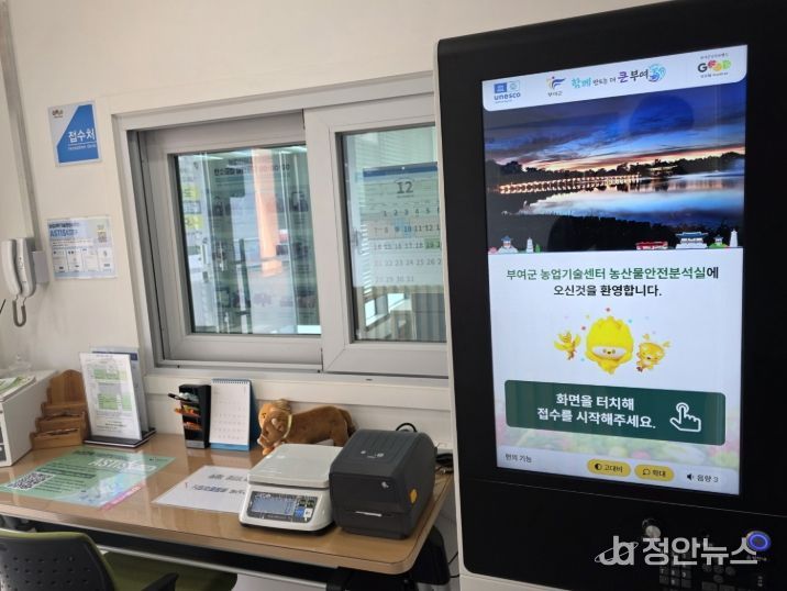 정안뉴스 황도연 기자 | 부여군은 농산물 안전성 분석 업무의 효율성과 이용 편의성을 높이기 위해 농산물 안전 분석 키오스크 운영을 시작했다고 밝혔다.