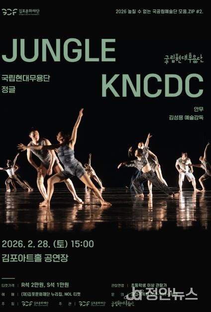 정안뉴스 안정주 기자 | (재)김포문화재단은 오는 2월 28일 오후 3시 김포아트홀에서 국립현대무용단이 선보이는 '정글' 공연을 개최한다고 밝혔다.