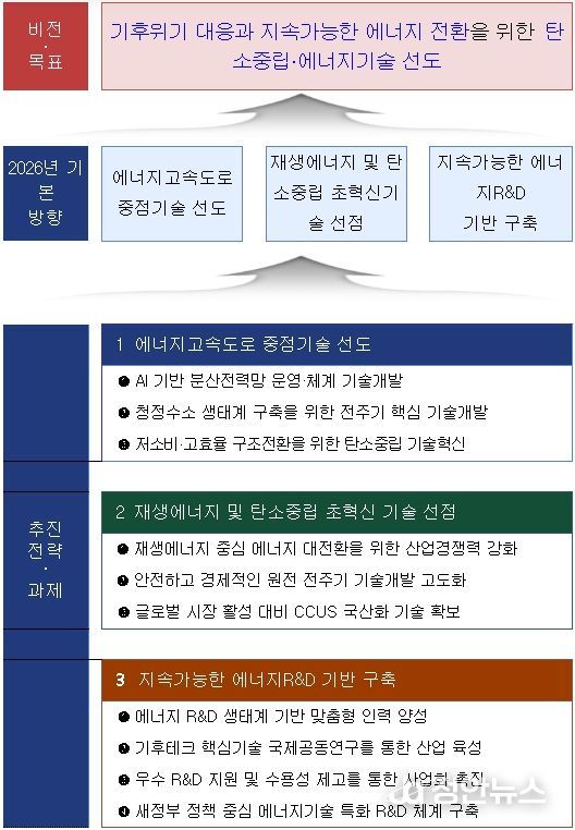 이에 기후에너지환경부는 1월 29일 2026년 에너지기술개발 실행계획과 제1차 에너지기술개발 신규과제 70개(1,369억 원)를 부처 누리집과 한국에너지기술평가원 누리집에 공고한다.