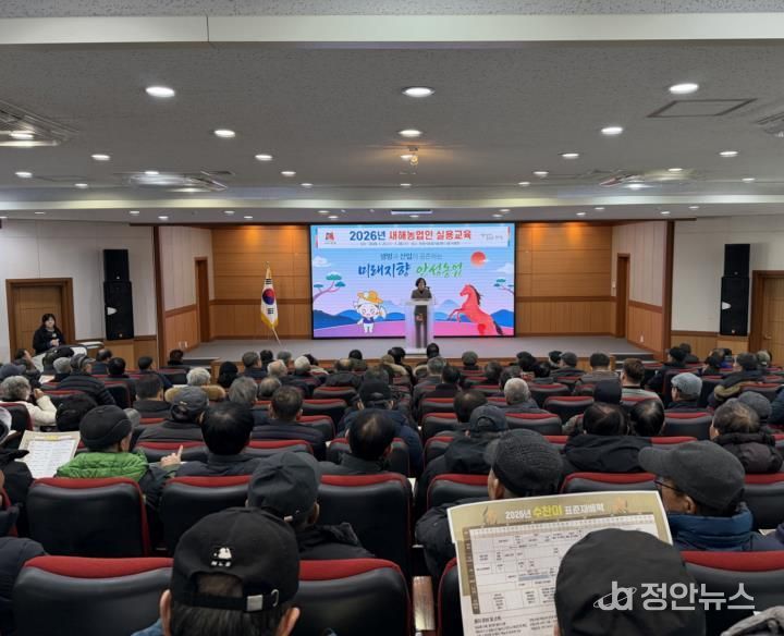 정안뉴스 안정주 기자 | 안성시농업기술센터는 지난 1월 28일, ‘2026년 새해농업인 실용교육’을 성황리에 마무리했다고 밝혔다. 이번 교육은 안성시가 새해를 맞아 추진한 농업인 실용교육 중 가장 높은 참여율을 기록하며, 지역 농업인의 큰 호응을 얻었다.