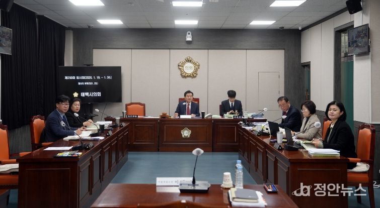 정안뉴스 안정주 기자 | 태백시의회는 29일 위원회실에서 제290회 임시회 제8차 본회의를 열고 시설사업소, 회계과, 민원과, 기획감사과, 동행정복지센터, 총무과, 예산정책과 등 7개 부서에 대한 2026년 주요업무 계획에 대한 보고를 받았습니다.