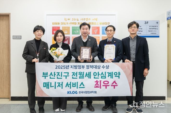 정안뉴스 황정혜 기자 | 부산진구의 대표적인 주거 복지 정책인‘부산진구 전월세 안심계약 매니저 서비스’가 (사)한국지방정부학회가 주관한 2025년 한국지방정부 정책대상 심사에서 최우수상을 수상하며 구민 체감형 청년친화 정책의 우수성을 다시 한번 인증받는 쾌거를 이뤘다.