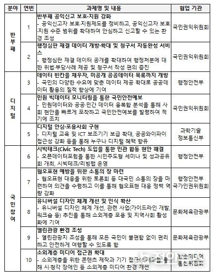 대한민국 정부는 2011년 국제협의체인 ‘열린정부파트너십(OGP)’에 가입한 이래, 정부 개방과 반부패, 국민참여 증진을 위한 실행계획을 꾸준히 이행하고, 관련 성과를 국제사회와 공유해 왔다.