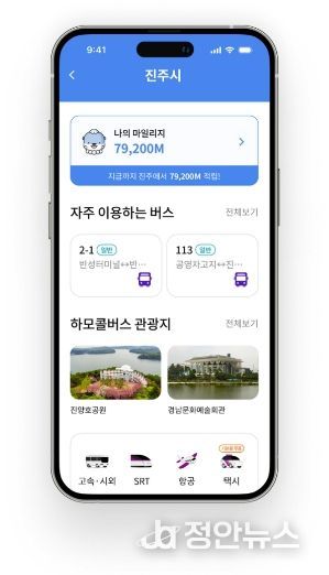 특히 진주시는 ‘티머니GO’에 ‘진주형마스’ 전용 페이지를 만들어 누구든지 진주시에 있는 교통수단을 간편하게 이용이 가능할 뿐만 아니라 주요 관광지와 교통 정보도 얻을 수 있다. 전국 최초로 교통수단 간의 환승 시에 환승 마일리지 적립도 가능한 전국 단위로 플랫폼에 기반한 광역 환승 할인제도를 실시하고 있다.