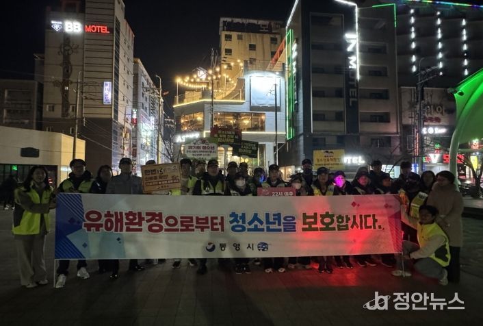 정안뉴스 김재홍 기자 | 통영시는 지난 4일 야간 시간대 광도면 죽림리 일원 청소년 유해업소 및 숙박업소 밀집지역에서 겨울방학을 맞은 청소년들의 일탈을 예방하고, 안전한 성장환경을 조성하고자 청소년 유해환경 개선활동을 실시했다.