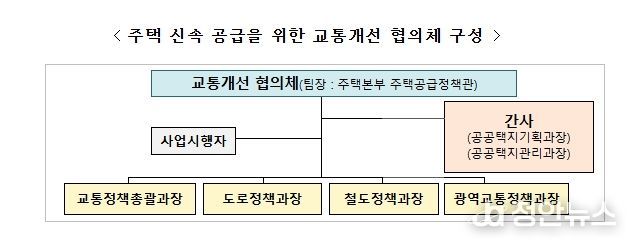 협의체는 주택공급추진본부 주택공급정책관을 팀장으로 교통정책총괄과장, 도로정책과장, 철도정책과장, 광역교통정책과장으로 구성되며, 주택공급 대상지와 관련하여 도로·철도·대중교통 등 교통 전반에 관련한 개선방안을 종합적으로 검토할 계획이다.
